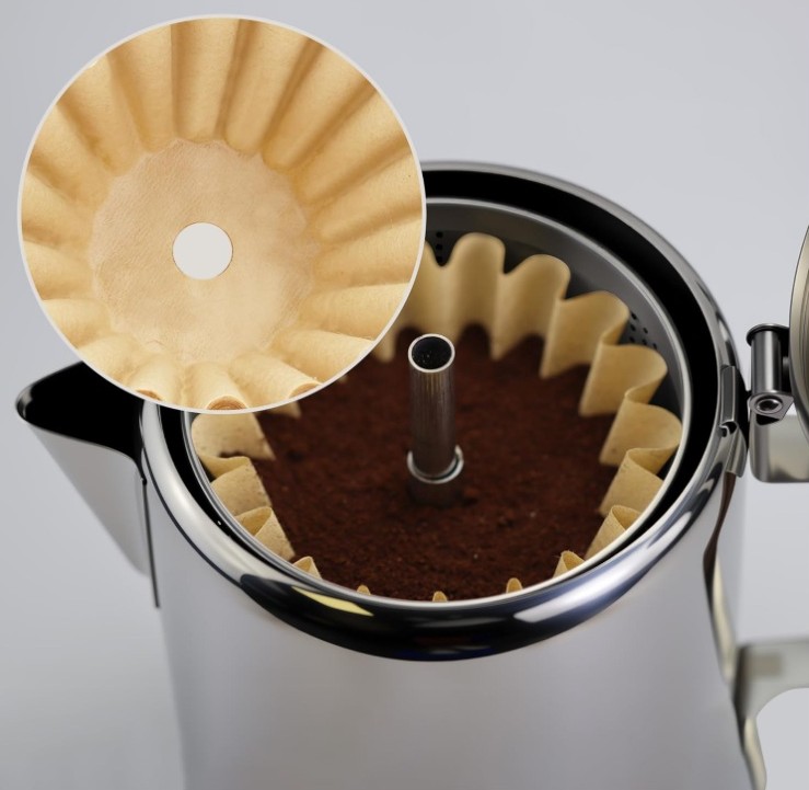 The thick, evenly textured coffee filter basket effectively traps fine coffee grounds and residue, delivering a smoother, cleaner taste with every brew.