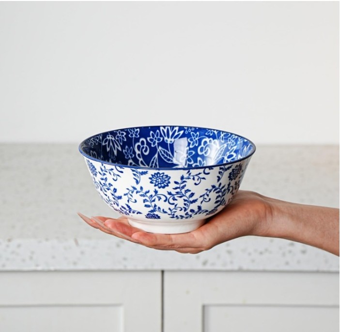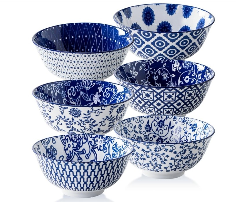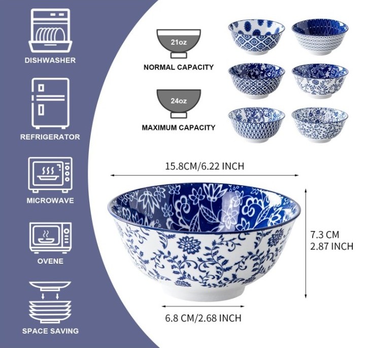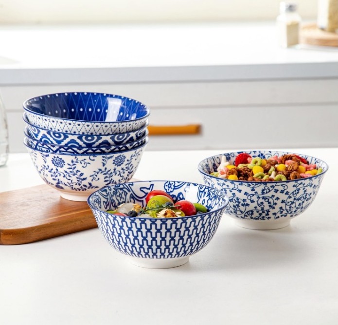 Inspired by traditional Chinese aesthetics, each ceramic bowl features a unique blue and white pattern, creating a visually striking mismatched set. Finished with a transparent, food-safe glaze, the bowls offer excellent resistance to scratches and fading while remaining easy to clean and maintain their original shine.