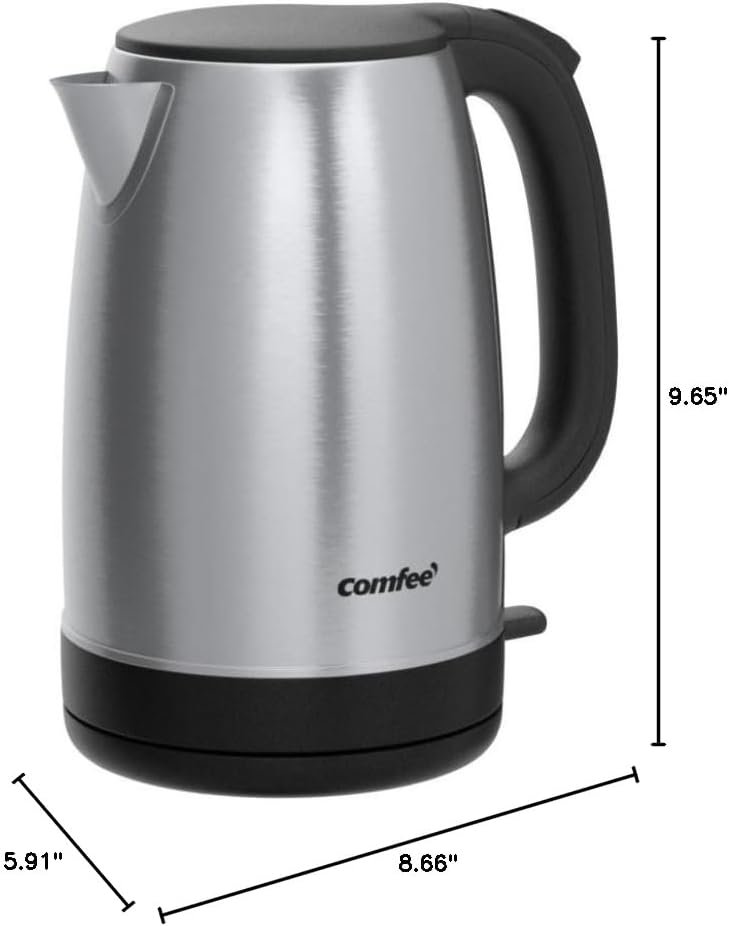 COMFEE’ highly recommended stainless steel electric kettle can boil water rapidly to make all your beverages! Drinking hot water is very important for our health and wellness. Enjoy a cup of instant hot water, coffee or tea every morning for your healthy diets!FASTER THAN A MICROWAVE. Rapid-boil system provides heat quickly.