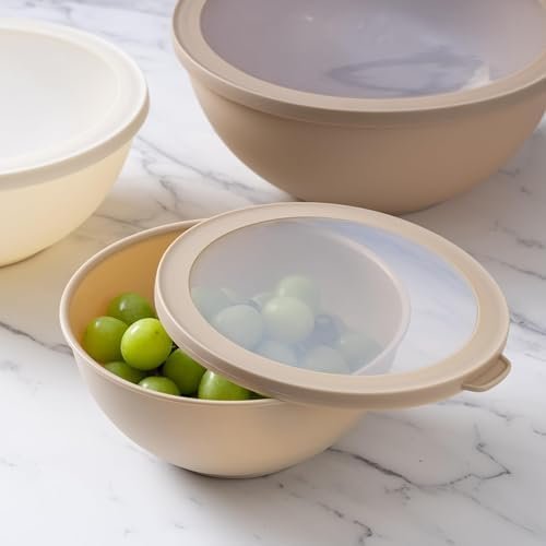 Plastic mixing bowl set made of BPA free durable polypropylene and food safe material. Top rack dishwasher safe, microwave safe and freezer safe.