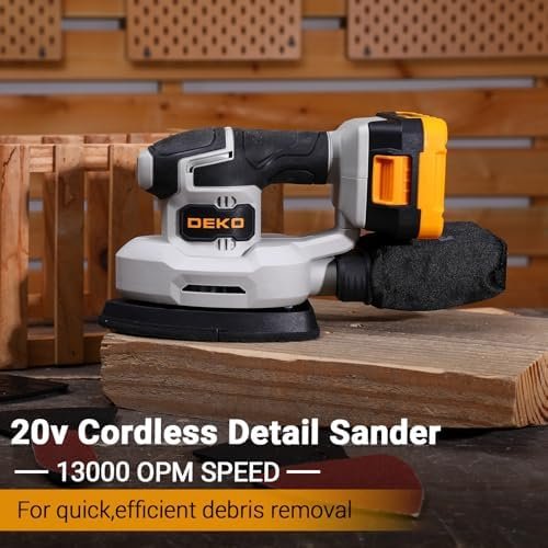 【POWERFUL】DEKOPRO detail sander run at 20V and up to 13,000 opm, allowing it to provide smooth performance in a variety of sanding applications.