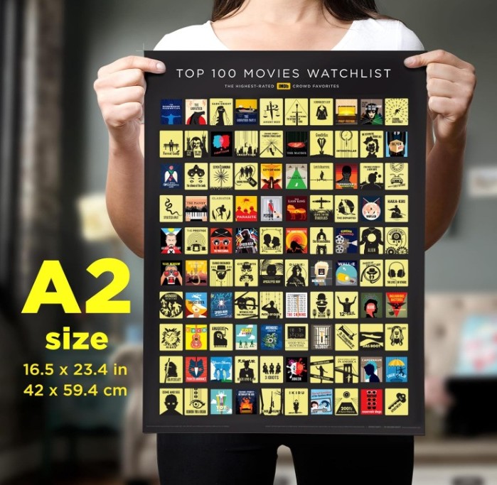 We partner with IMDb to produce this poster, using their official Top 100 Movies List. The list is generated by millions of IMDb users, making it one of the most authoritative movie lists available.