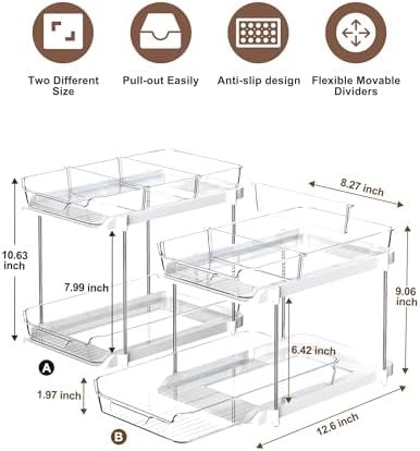 Pull-Out Drawers and Divider: This kitchen organization and storage set come with 4 slide-out drawers and 8 movable dividers. Each drawer can slide in and out smoothly, making it a breeze to access hard-to-reach things. The movable divider allows you to freely adjust the spacing as you like to organize your meds, cosmetics, stationery, skincare, perfume, brushes, etc.
