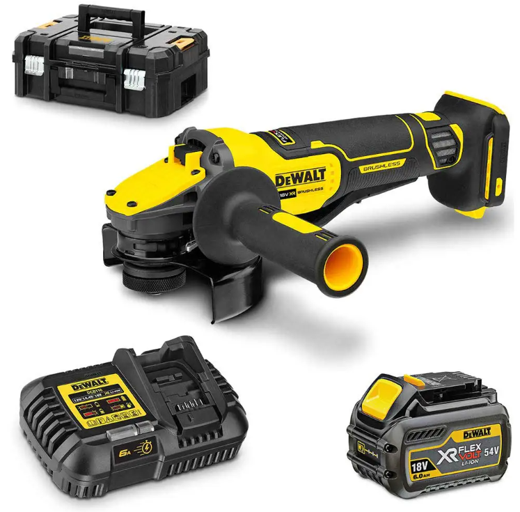 The Dewalt Angle Grinder Delivers Up To 54% More Power When Paired With A FlexVOLT 6.0Ah Battery!
