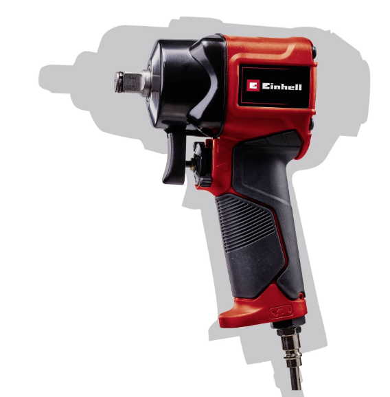 The compressed air impact driver TC-PW 610 Compact proves itself with 6.3 bar maximum working pressure especially in the transition period, in spring and autumn, as an indispensable aid in the garage and workshop. The powerful impact driver with a maximum torque of 610 Nm is a real support when changing car tires. Thanks to its high performance, the impact driver is also suitable for demanding tasks. The compact design of the impact driver is ideal for working in places that are difficult to access, and the low weight of the product also ensures a pleasant handling, even during lengthy work. One-handed operation is possible through the ergonomic left/right switching. The compressed air impact driver is equipped with left (single-stage) and right-handed rotation (three-stage). The non-slip, rubberized grip enables a safe working. The impact driver has a 1/2″-square drive, the best performance it delivers from a hose inner diameter of 9 mm. The delivery includes 3 sockets with plastic sleeve in the sizes 17/19/21 mm, 1 oil bottle, 1 plug nipple and 10 m thread sealing tape in a practical transport and storage case.