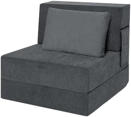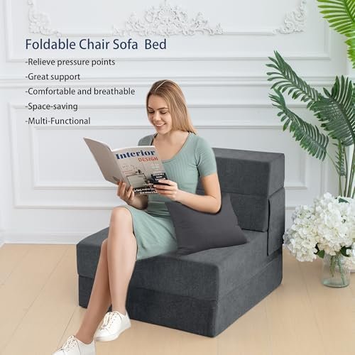 【High-quality Fabric and Foam】:Dark grey breathable fabric is stylish and elegant, skin-friendly and breathable.The high-density foam tri-fold down sofa bed is very comfortable, soft and supportive, so you won’t “sink” or feel the hard floor.
