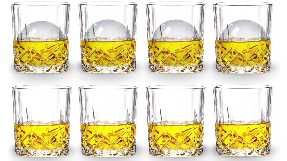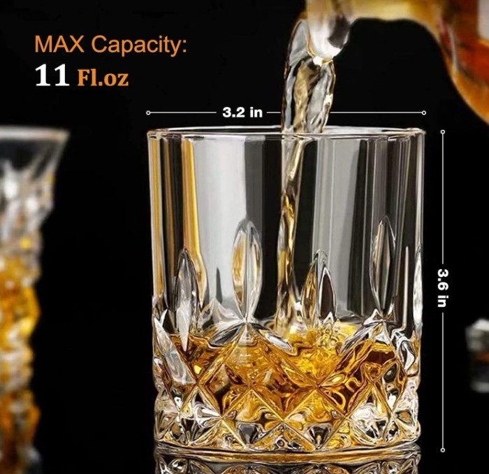 This premium set includes 8 short whiskey glasses, perfectly sized at 11 oz for whisky, scotch, bourbon, vodka, and classic cocktails. The standard capacity comfortably fits ice cubes while offering a balanced, ergonomic feel in the hand.