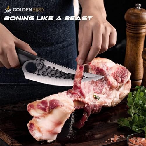 Multipurpose — This handmade meat cleaver is classified as a multi-function kitchen knife. The curved blade is perfect for many kitchen tasks like trimming brisket, slicing meat, and chopping vegetables, breaking down a whole chicken and deboning of lamb ribs.