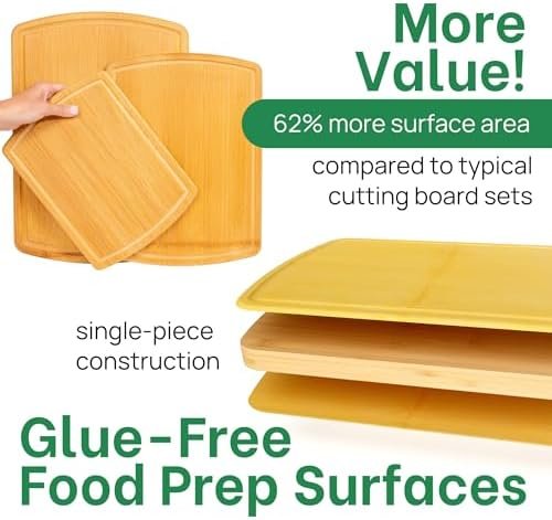 Experience pure meal prep with Greener Chef’s single-piece bamboo cutting boards. Each board features a continuous bamboo surface with no glues or adhesives, ensuring a safer, cleaner surface for chopping, slicing, and dicing. Enjoy peace of mind knowing your food never touches harmful substances.