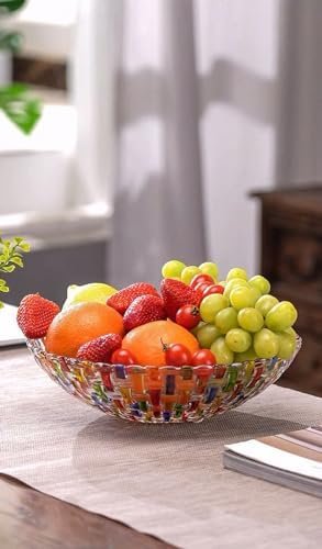 Unique Design:: Hand Painted Colorful Woven Glass Crystal Salad & Fruit Bowl
