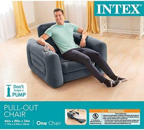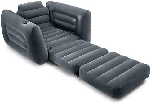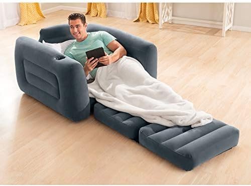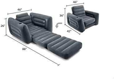 COMFORT: The cozy, velvety material provides an incredibly comfortable seating surface with a convenient built-in cup-holder to keep your favorite beverage nearby; pull out the cushion into a twin size bed for a quick and comfortable sleeping solution