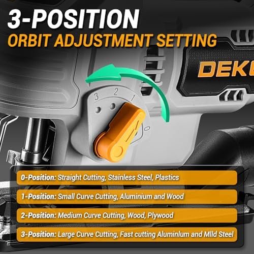 [LED LIGHT & 3 ORBITAL SETTINGS] Cordless Jigsaw with LED light that illuminates dark areas to ensure improved visibility and cutting accuracy in different work bench. 3-position orbital settings allow for smooth cutting for a variety of applications.