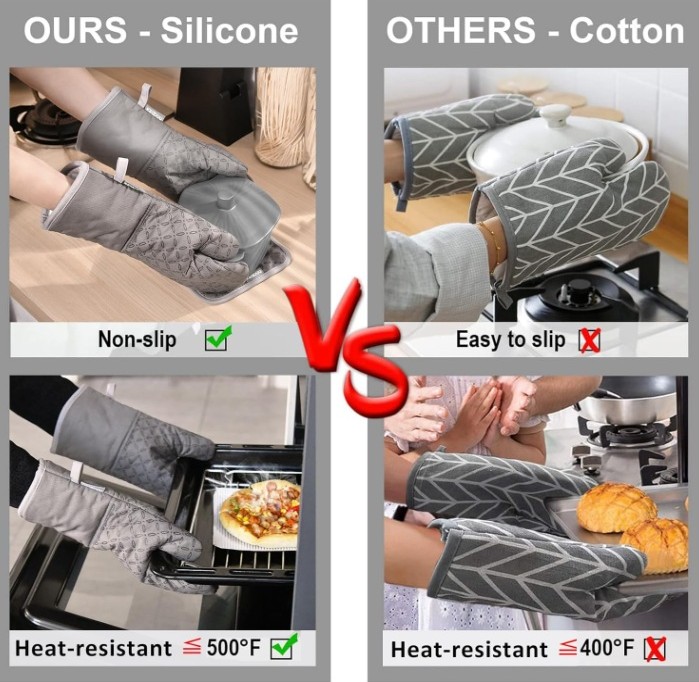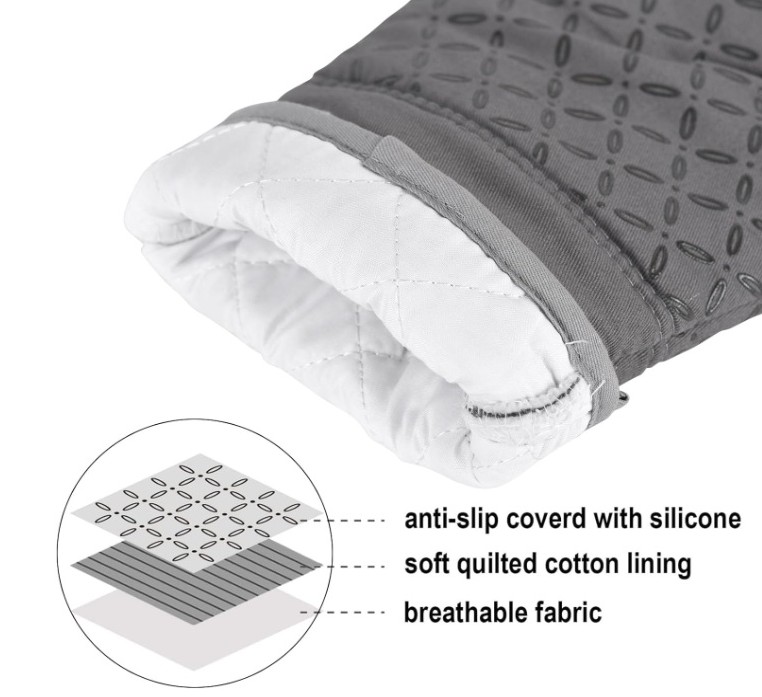 Built with durable heat-resistant construction, these oven mitts protect your hands from temperatures up to 500°F. The enhanced silicone non-slip surface ensures a secure grip when handling hot cookware, bakeware, and kitchen utensils.