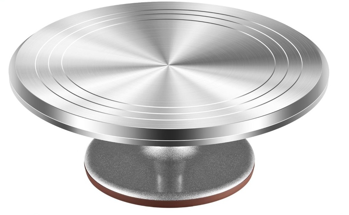 Featuring a 12-inch non-slip surface, rubber feet, and guiding lines, this cake turntable keeps the cake securely in place and helps achieve accurate positioning throughout the decorating process.