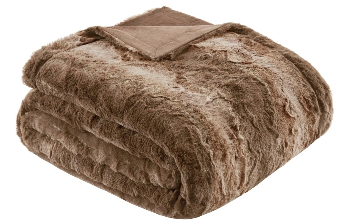The Madison Park Zuri Blanket features ultra-soft faux fur with a solid luxe microfur reverse, offering both comfort and elegant texture. Designed to add warmth and a glamorous accent to any living space.