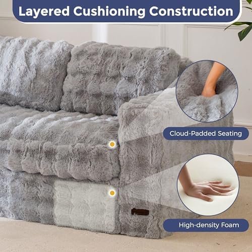 Ultra-Soft Bubbled Fabric: Upholstered in cozy bubble faux fur, this fluffy sofa couch feels warm, soft, and inviting—ideal for relaxing after a long day