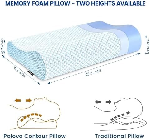 2 Available Heights for Any Sleep Style: Memory foam pillow is with size: 23.5 x 13.4 x 4.9/3.4 inches ( L x W x H). There are two available neck support heights to support your neck and head. The ergonomic and supportive pillow for neck pain is designed for multiple sleeping positions, such as side sleeping, supine, stomach sleeping, back sleeping and low pillow sleepers etc.
