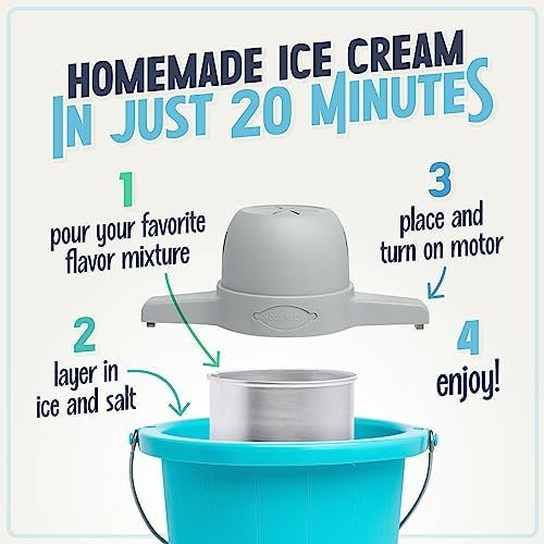 QUICK AND EASY: Make homemade ice cream in 20 minutes. The powerful electric motor does all the churning and work for you. There is no more intensive stirring or manual effort, and the motor locks into place to keep all parts secure.