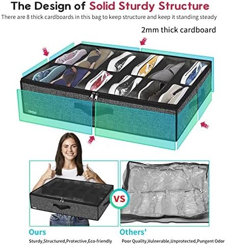 LARGE STORAGE CAPACITY: This shoes under bed organiser set can store up to total 24 pairs of flat shoes or 12 pairs of sneakers with ease. Foldable to save space when not in use. Large size: 29.3″x23.6″x5.9″(74.5x60x15cm), each cell: L11.8″x W4.9″x H5.9″(30×12.4x15cm), more suitable for women and girls.