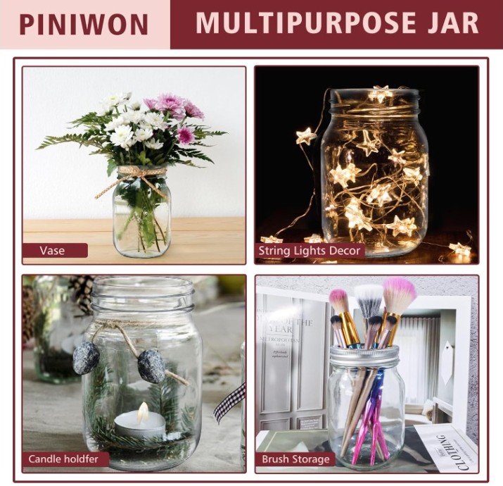 Ideal for canning sauces, jams, honey, overnight oats, soups, and beverages. Perfect for pickling vegetables, storing dry goods, spices, snacks, or craft items. Also great for DIY projects such as vases, homemade candles, décor, and thoughtful gifts for weddings or special occasions.