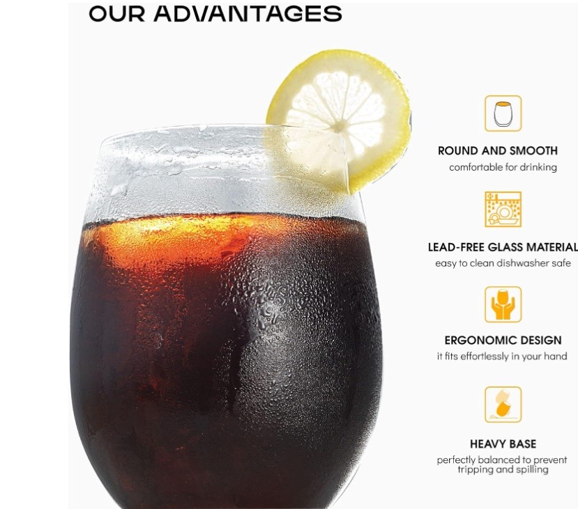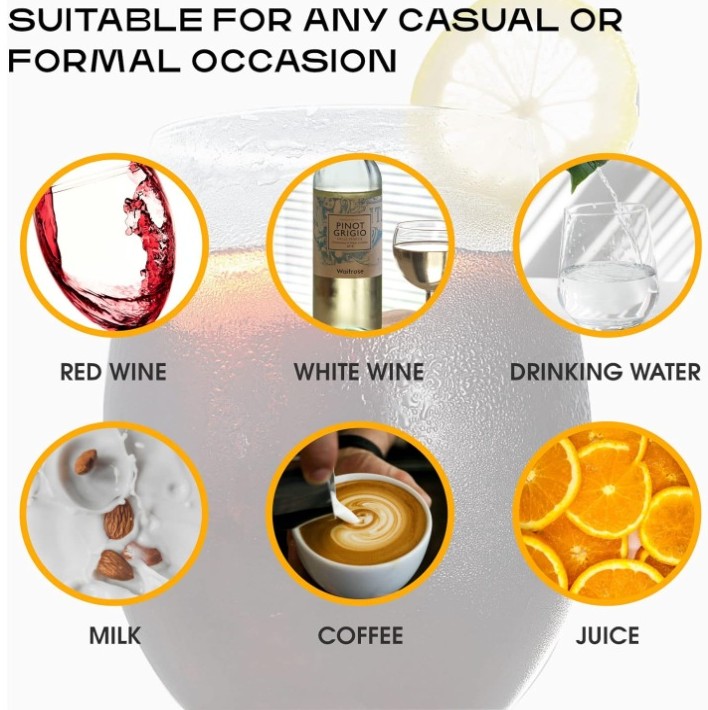 With an 18.5 oz capacity, this elegant stemless wine glass is designed to fit comfortably in your hand while offering a modern, refined silhouette. Ideal for red or white wine, cocktails, champagne, cabernet, juice, or everyday beverages.