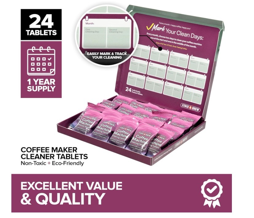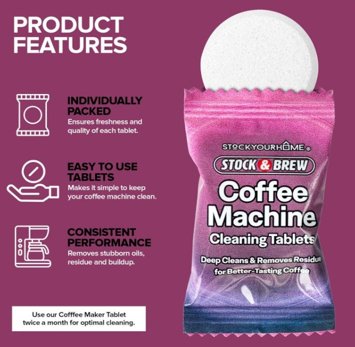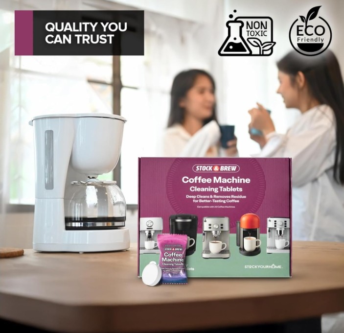Stock & Brew cleaning tablets are made with non-toxic, environmentally friendly ingredients, ensuring safe cleaning while protecting your machine and preserving the natural flavor of your coffee.