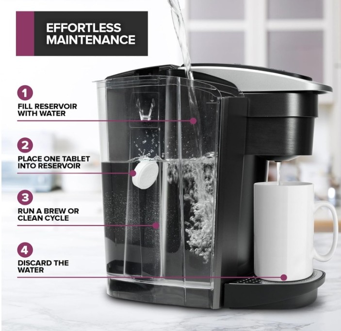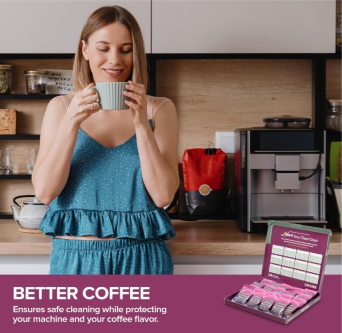 Simply drop in a tablet, brew, and rinse. No measuring, no powders, and no mess—just a safe, effective, and convenient cleaning process.