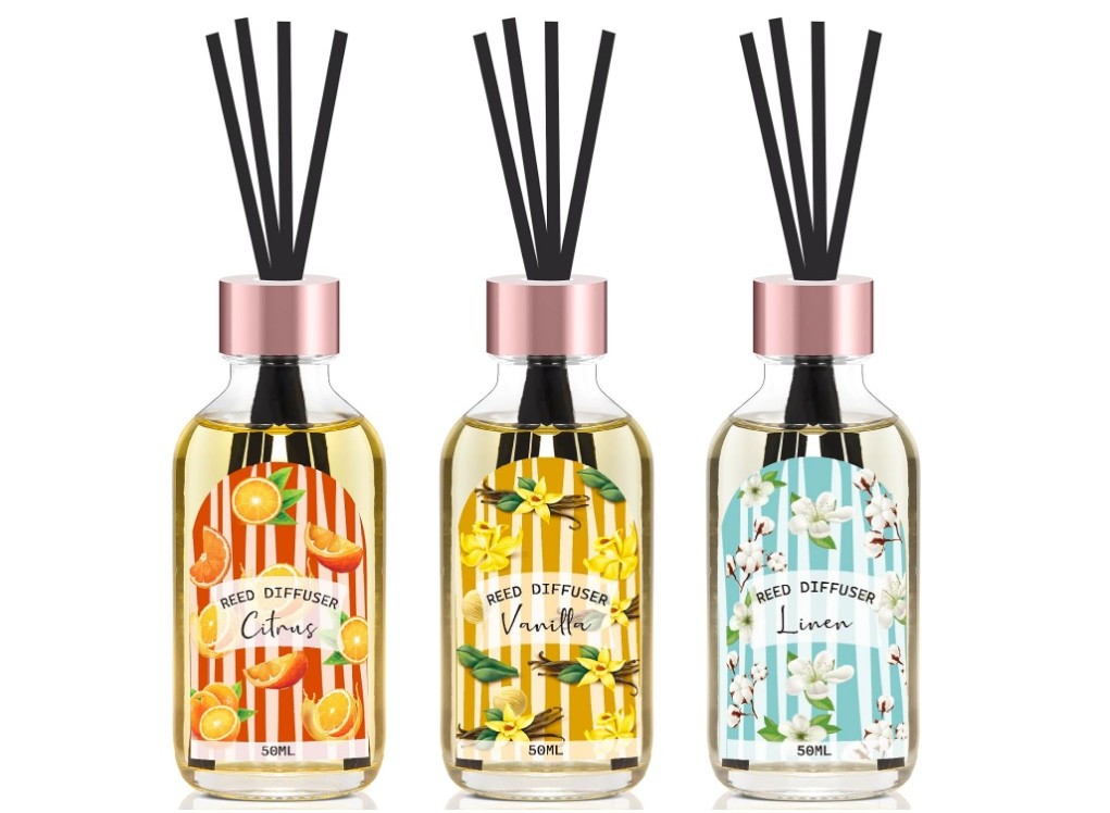 Enjoy three fragrances in one elegant diffuser. Linen delivers a clean, fresh-laundry scent that feels light and uplifting. Vanilla adds a warm, sweet, and rich aroma that evokes comforting dessert notes. Citrus provides an energizing and refreshing finish with a bright, zesty character.