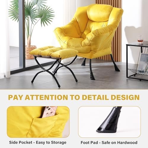 Tiita Lazy Chair with Ottoman, Modern Large Accent Lounge Armchair, Comfy