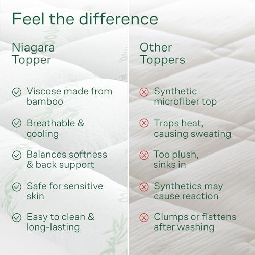 ULTRA SOFT: Niagara Queen Mattress Topper is made from viscose made from bamboo fiber and fits mattresses 8-20 inches deep. The mattress topper queen is 60×80 inches in size, gentle on sensitive skin, and ultra-soft.