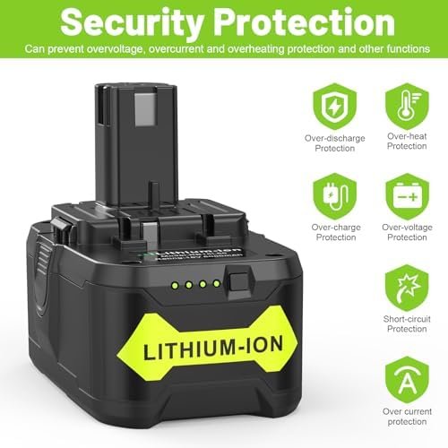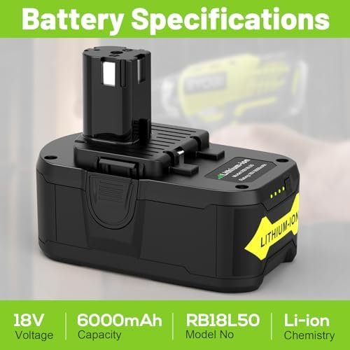 Specification – 6.0 Ah Higher Capacity, Voltage 18V, Battery TypeLi-ion,1 pack. This Battery for Ryobi 18V Power Tools has no memory effect, no content of toxic and harmful substances, high current charge-discharge capability, great energy density and long cycle life.