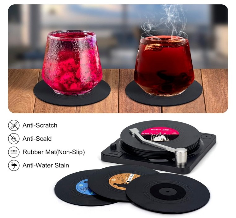 Inspired by the iconic style of the 80s, these vinyl record coasters perfectly capture the cool, nostalgic appeal of classic music culture. They make a unique and thoughtful gift for music lovers, vinyl collectors, DJs, and anyone who appreciates retro decor with character.