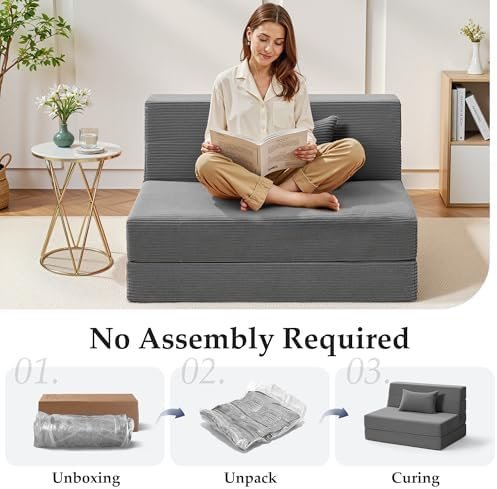【No Assembly Required】Arrives vacuum-packed for secure shipping—simply unbox, allow 24 hours for full expansion, and enjoy. The lightweight, foldable design makes this floor lounger and chair bed easy to move, store, and maximize space.